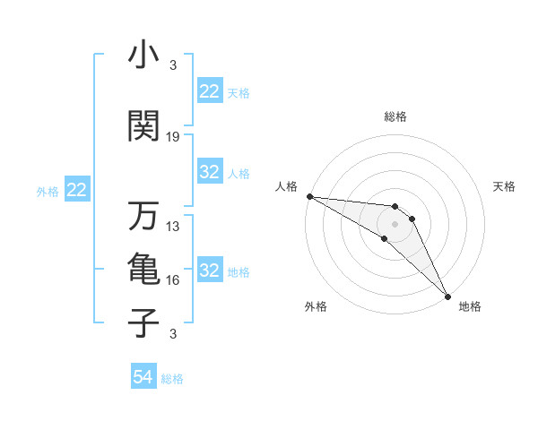 小関 万亀子さんの外格は22画の1点!