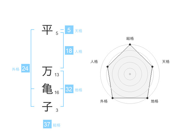 平 万亀子さんの総格は37画の5点!