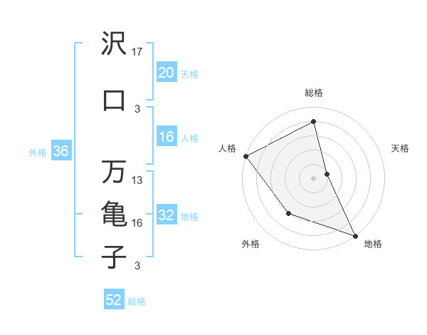 沢口 万亀子さんを姓名の画数から五運を鑑定