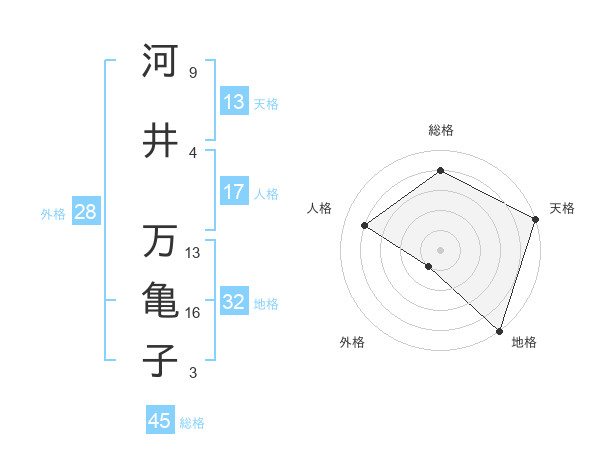 河井 万亀子さんを姓名の画数から五運を鑑定