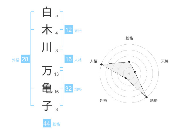 白木川 万亀子さんを姓名の画数から五運を鑑定