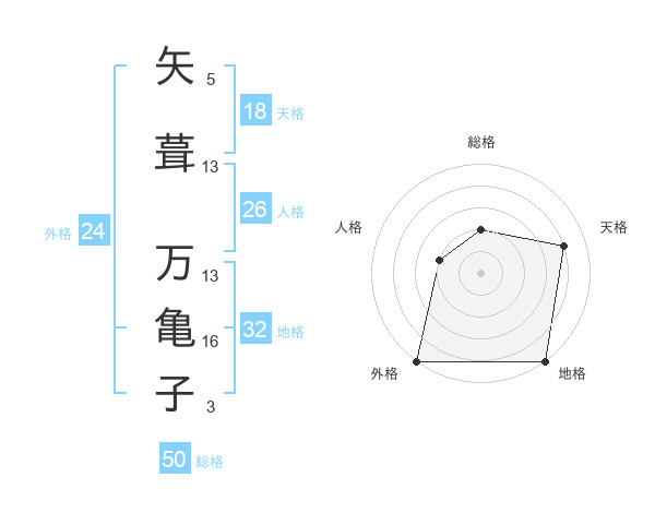 矢葺 万亀子さんを姓名の画数から五運を鑑定