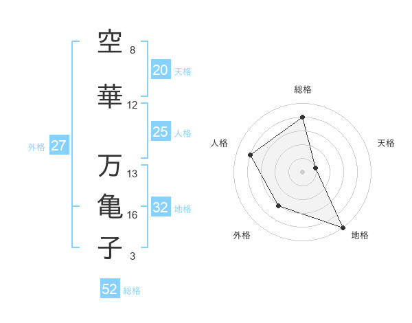 空華 万亀子さんの総格は52画の4点!