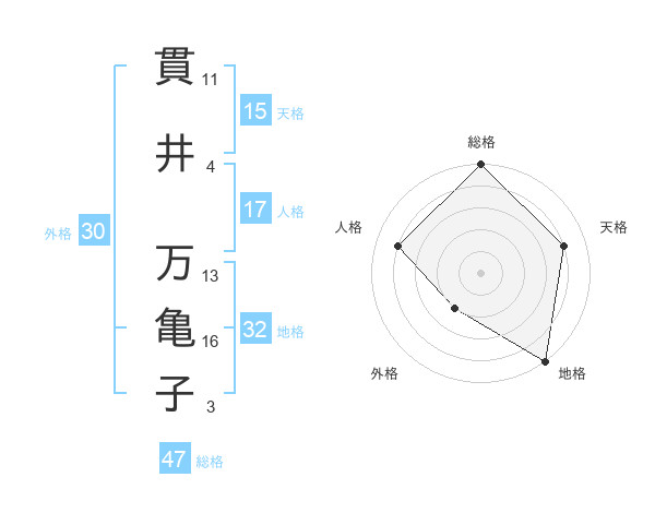 貫井 万亀子さんの総格は47画の5点!