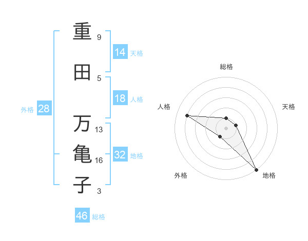 重田 万亀子さんを姓名の画数から五運を鑑定