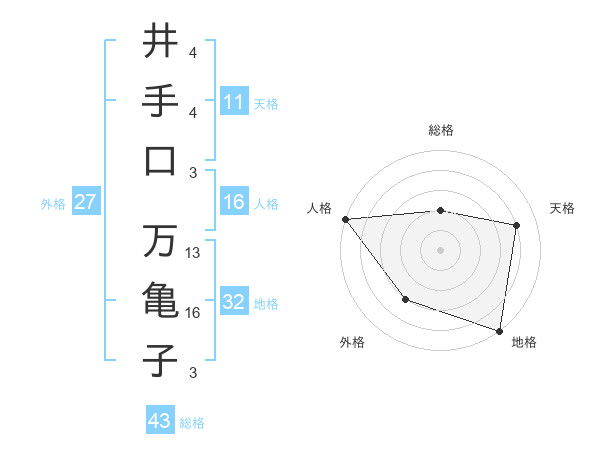井手口 万亀子さんの天格は11画の4点!