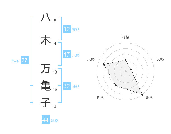 八木 万亀子さんの総格は44画の2点!