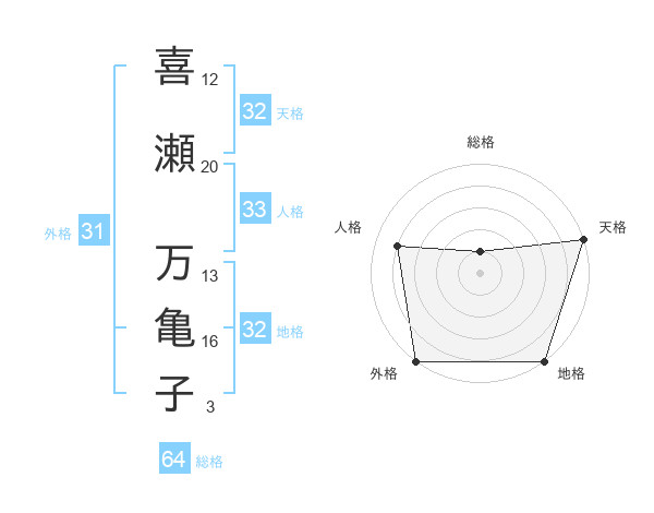 喜瀬 万亀子さんを姓名の画数から五運を鑑定
