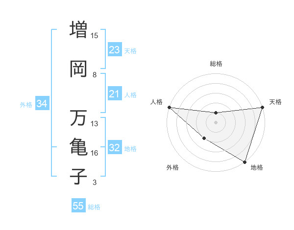 増岡 万亀子さんを姓名の画数から五運を鑑定