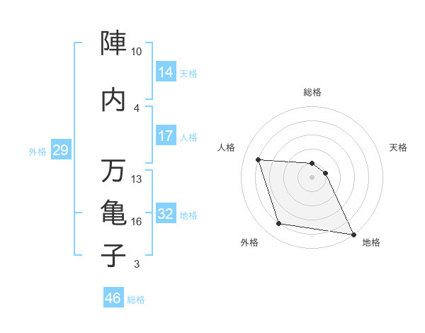 陣内 万亀子さんの外格は29画の4点!