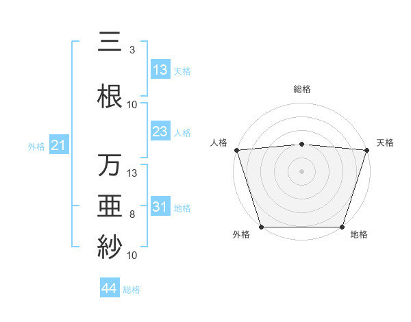 三根 万亜紗さんを姓名の画数から五運を鑑定