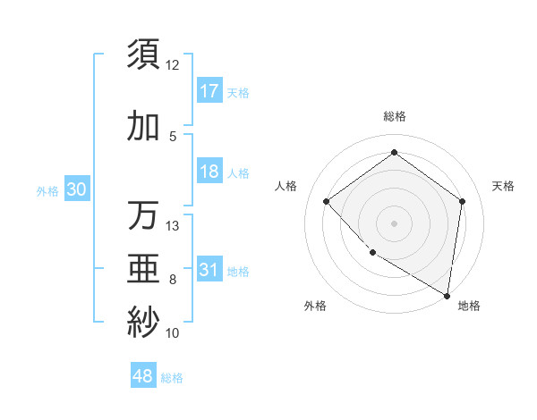 須加 万亜紗さんの天格は17画の4点!