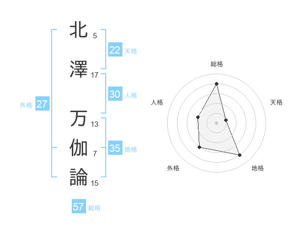 北澤 万伽論さんを姓名の画数から五運を鑑定