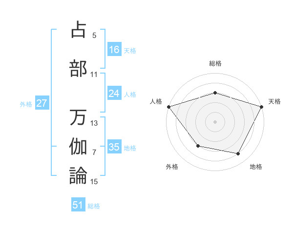 占部 万伽論さんを姓名の画数から五運を鑑定