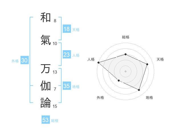 和氣 万伽論さんを姓名の画数から五運を鑑定