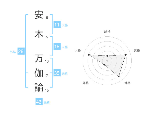 安本 万伽論さんを姓名の画数から五運を鑑定