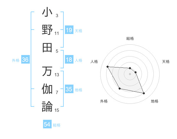小野田 万伽論さんを姓名の画数から五運を鑑定