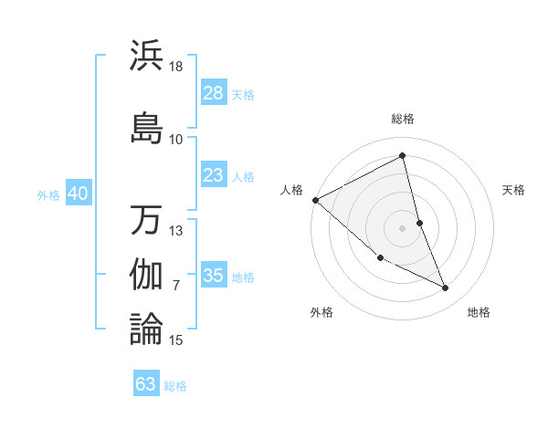 浜島 万伽論さんの総格は63画の4点!