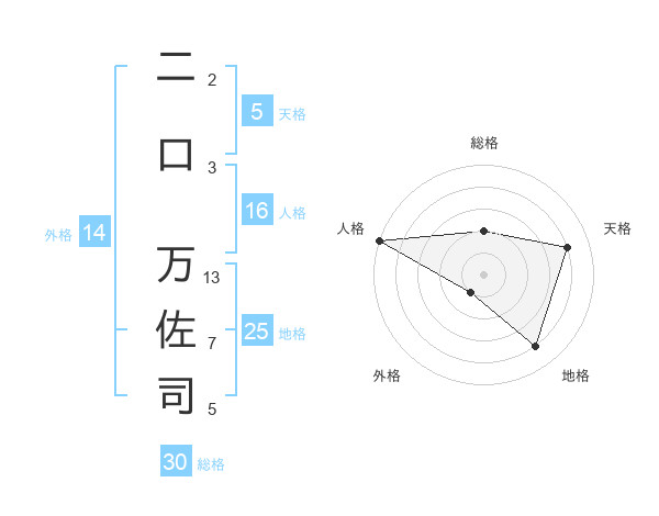 二口 万佐司さんを姓名の画数から五運を鑑定