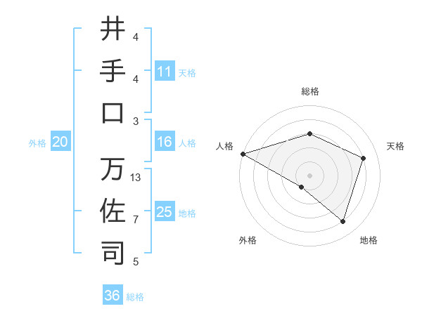 井手口 万佐司さんを姓名の画数から五運を鑑定