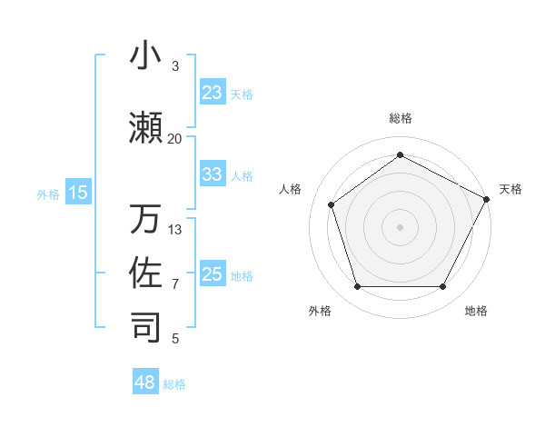 小瀬 万佐司さんを姓名の画数から五運を鑑定
