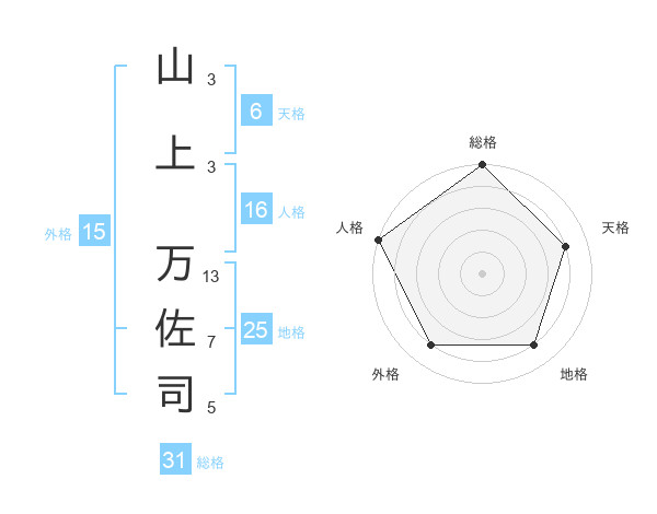 山上 万佐司さんを姓名の画数から五運を鑑定