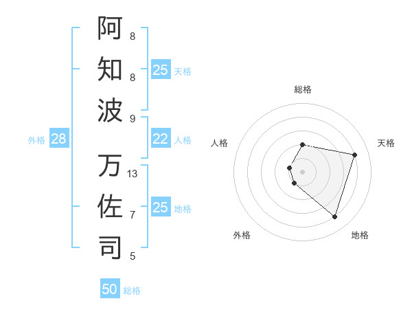 阿知波 万佐司さんの総格は50画の2点!