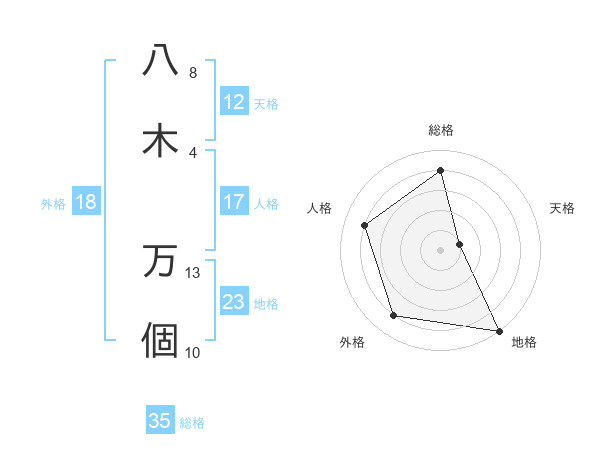 八木 万個さんの総格は35画の4点!