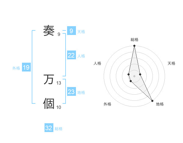 奏 万個さんの総格は32画の5点!