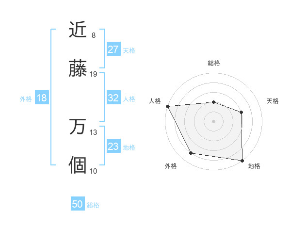 近藤 万個さんの総格は50画の2点