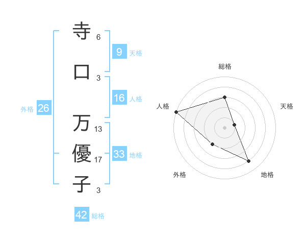 寺口 万優子さんの総格は42画の3点!
