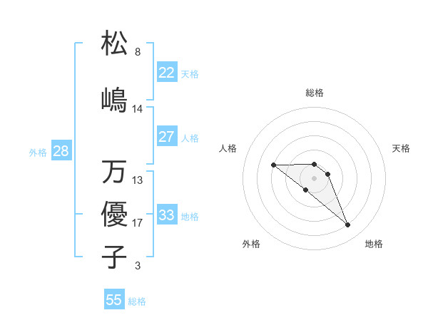 松嶋 万優子さんを姓名の画数から五運を鑑定