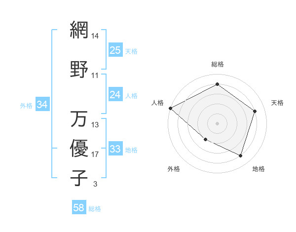 網野 万優子さんの天格は25画の4点!
