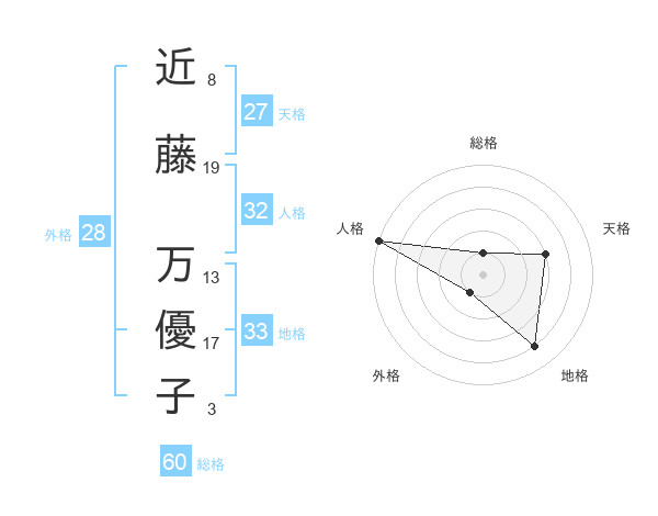 近藤 万優子さんの総格は60画の1点!