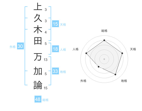 上久木田 万加論さんの天格は15画の4点!