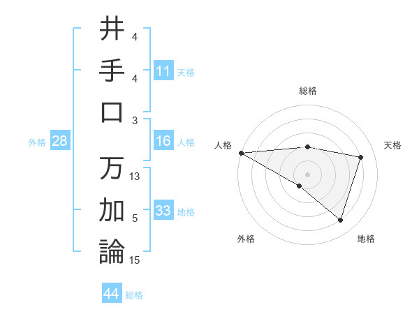 井手口 万加論さんを姓名の画数から五運を鑑定