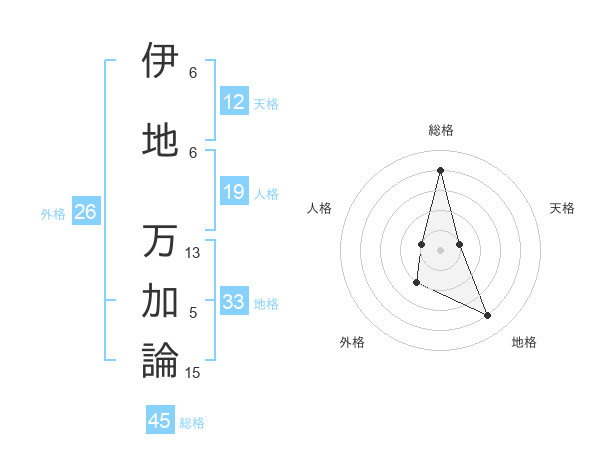 伊地 万加論さんを姓名の画数から五運を鑑定