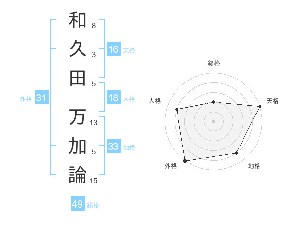 和久田 万加論さんを姓名の画数から五運を鑑定