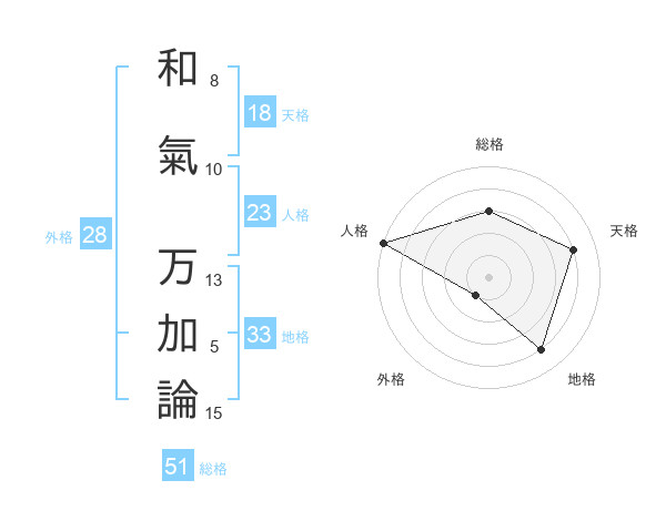 和氣 万加論さんを姓名の画数から五運を鑑定