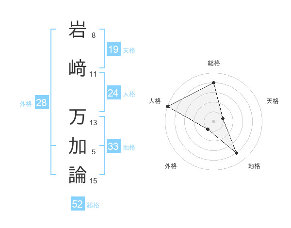 岩﨑 万加論さんを姓名の画数から五運を鑑定