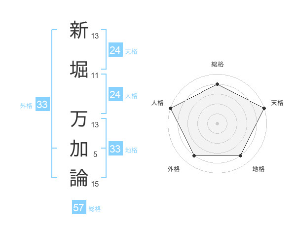 新堀 万加論さんの天格は24画の5点!