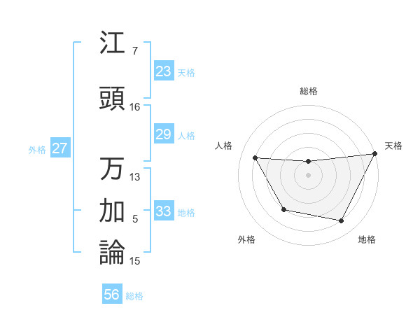 江頭 万加論さんを姓名の画数から五運を鑑定