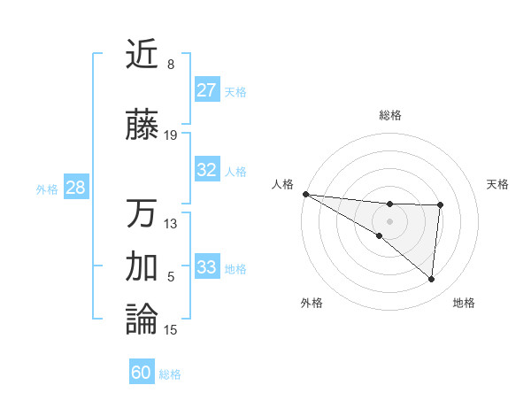 近藤 万加論さんを姓名の画数から五運を鑑定