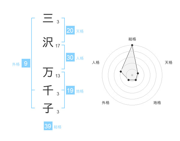 三沢 万千子さんを姓名の画数から五運を鑑定