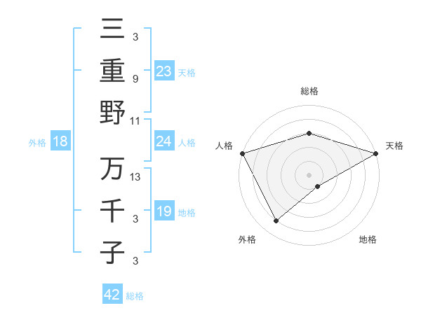 三重野 万千子さんの天格は23画の5点!
