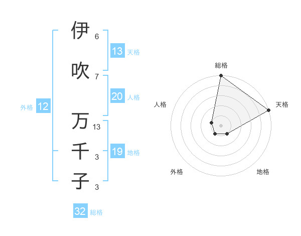 伊吹 万千子さんを姓名の画数から五運を鑑定