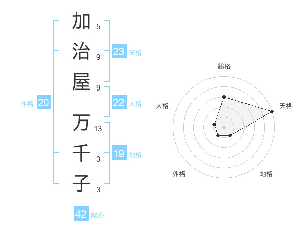 加治屋 万千子さんを姓名の画数から五運を鑑定