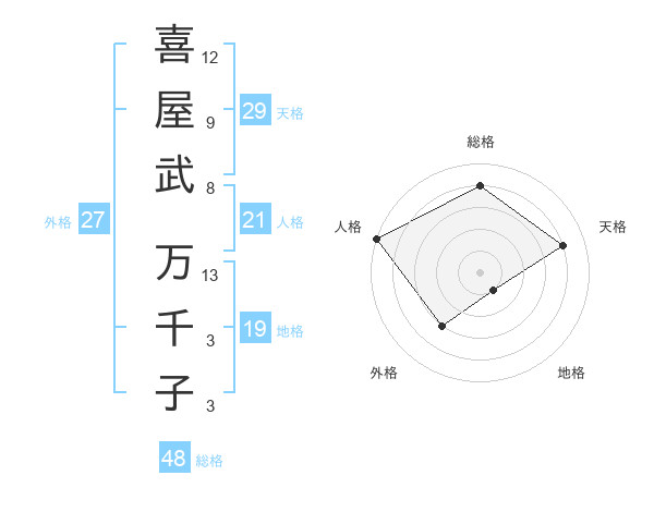 喜屋武 万千子さんを姓名の画数から五運を鑑定