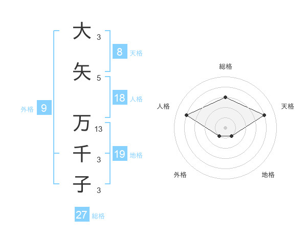 大矢 万千子さんの総格は27画の3点!