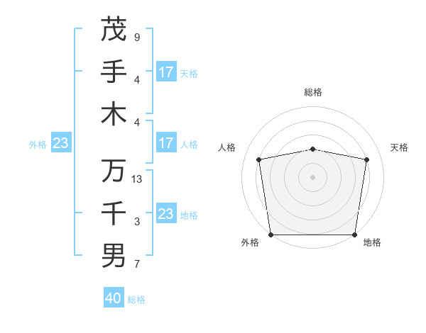 茂手木 万千男さんを姓名の画数から五運を鑑定